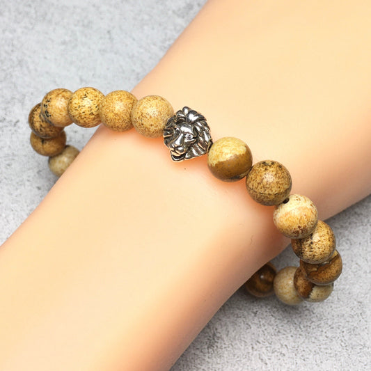 Picture Jasper Beaded Adjustable Gemstone Bracelet Lion Style