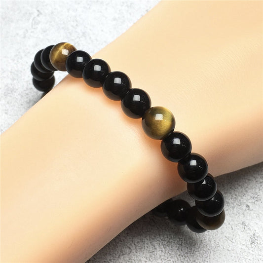 Tiger Eye Black Onyx Gemstone Stretch Meditation Healing Bracelets