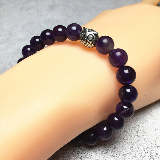 Natural Gemstone Purple Amethyst Handmade Beaded Bracelet Adjustable Bracelet Owl Design