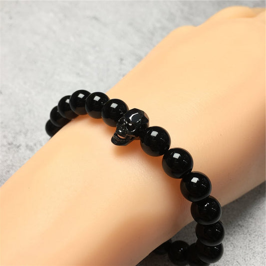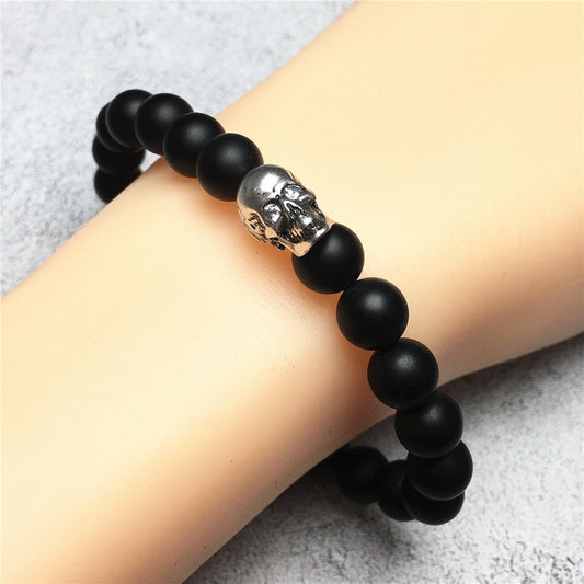 Bold Skull Matte Onyx Handmade Gemstone Crystal Bracelet