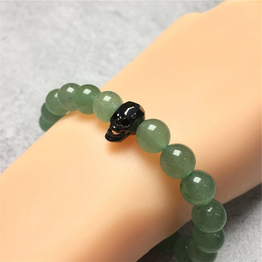 Green Adventurine Gemstone Skull Pendant Handmade Beaded Bracelet