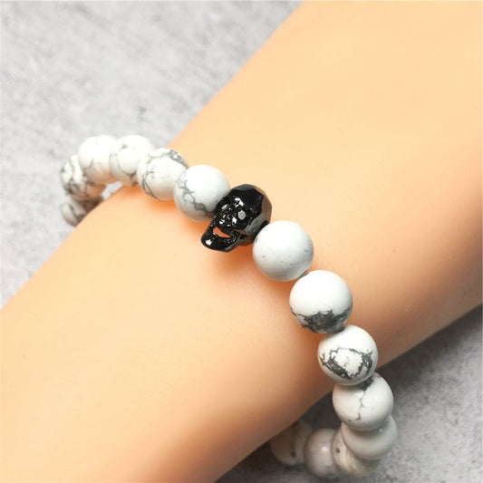 Skull Pendant Howlite Stone Beaded Bracelet