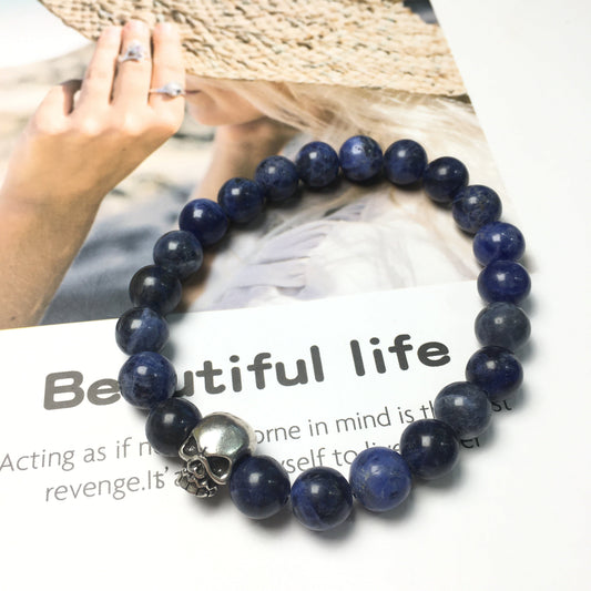 Sodalite Gemstone Unisex Handmade Stretch Bracelet Imperial Skull Charm