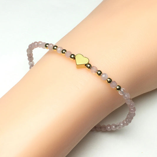 Rose Quartz Gemstone Adjustable Beaded Bracelet with Love Heart Charm