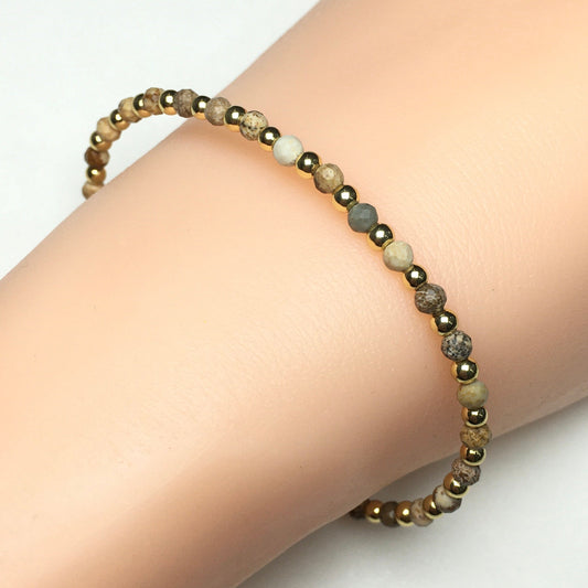 Picture Jasper Gemstone Beaded Bracelet Custom Beads Stone Bracelet Heart Charm Design