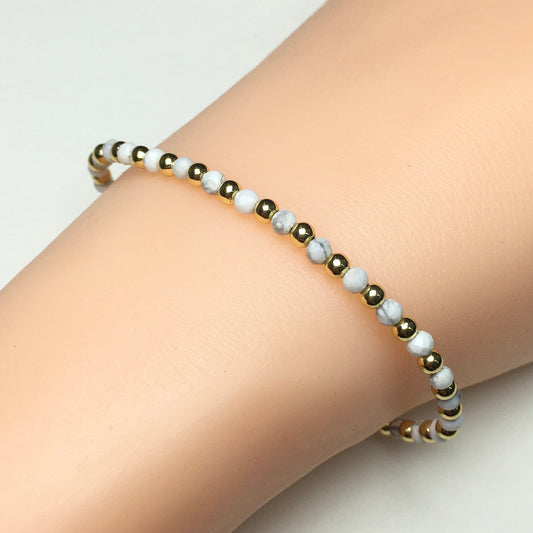 Howlite Gemstone Beaded Bracelet Custom Beads Stone Bracelet Heart Charm Design