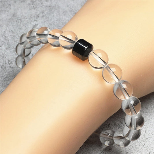 Clear Quartz Gemstone Elastic Stretch Magnet Hematite Bracelet