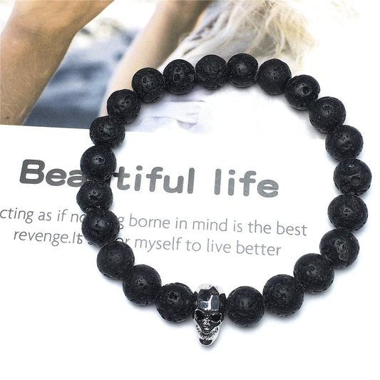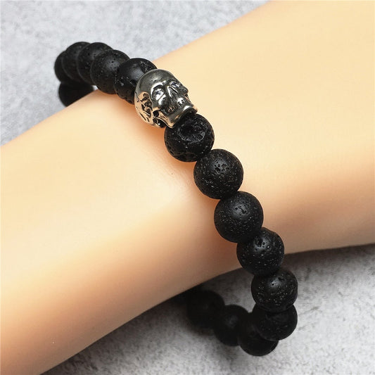 Bold Skull Lava Handmade Gemstone Crystal Bracelet