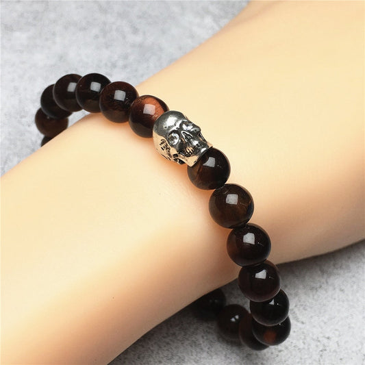 Bold Skull Red Tiger Eye Handmade Gemstone Crystal Bracelet