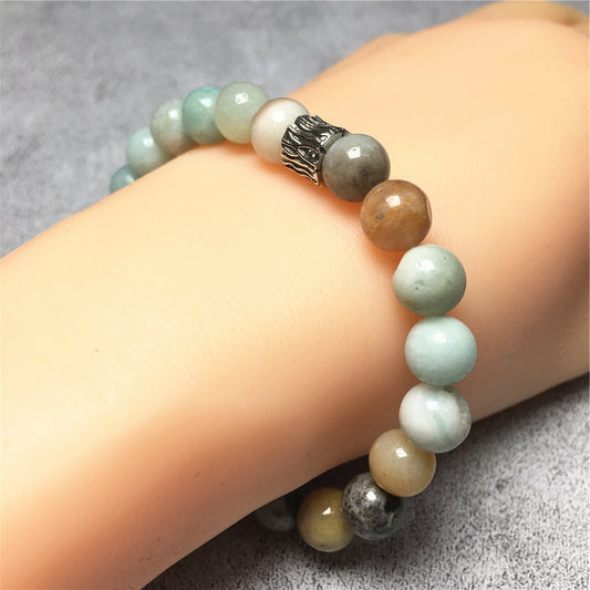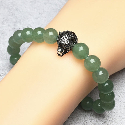 Wolf Charm Natural Green Adventurine Stone Bracelets Elastic Jewelry
