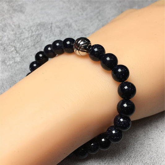 Blue Sandstone Basketball Charms Beads Bracelet