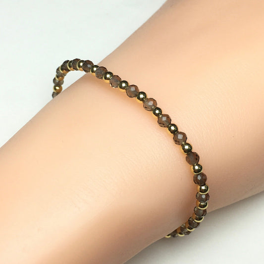 Smoky Quartz Gemstone Beaded Bracelet Custom Beads Stone Bracelet Heart Charm Design