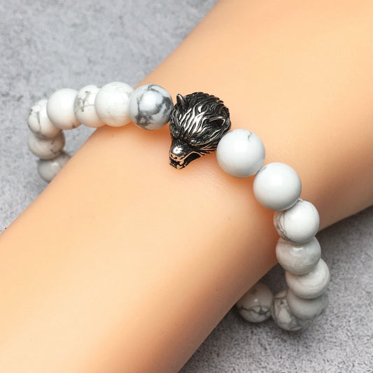 Wolf Charm Natural Howlite Stone Bracelets Elastic Jewelry