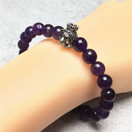 Purple Amethyst Gemstone Beaded Adjustable Bracelet Lion King Design