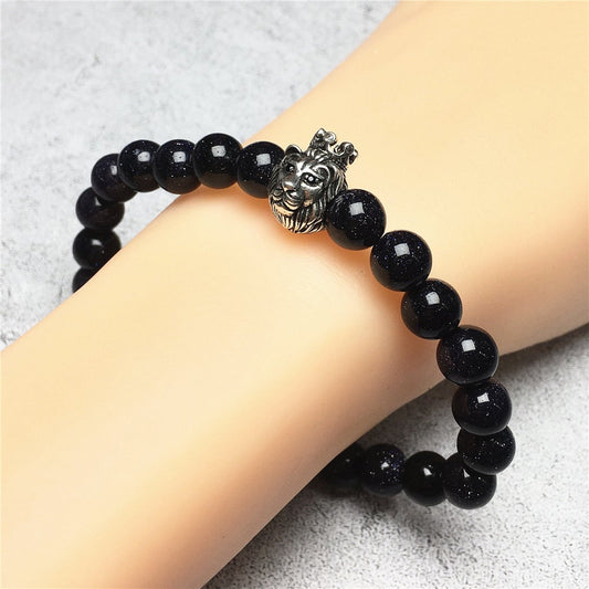 Natural Gemstone Blue Sandstone Beaded Adjustable Bracelet Lion King Design