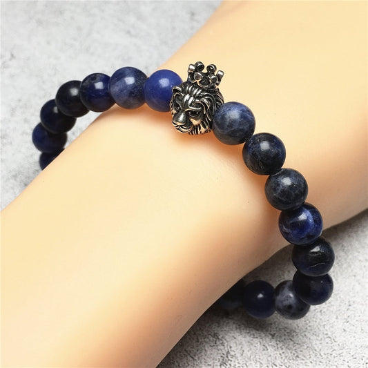 Natural Sodalite Gemstone Beaded Adjustable Bracelet Lion King Design