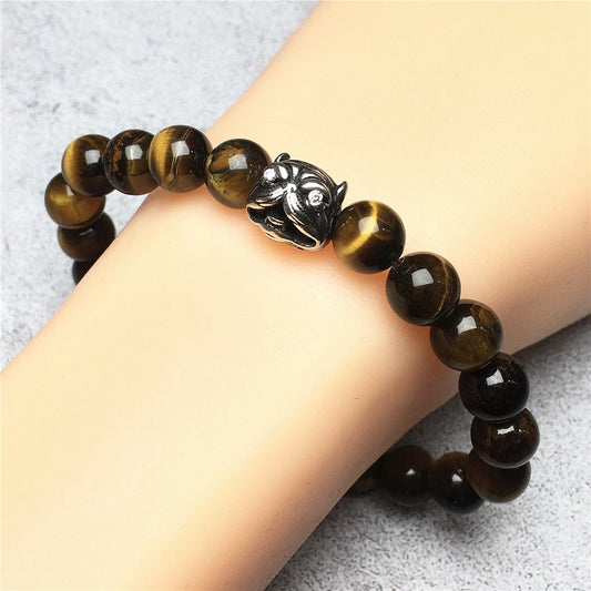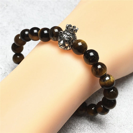 Lion King Design Tiger Eye Gemstone Beaded Adjustable Bracelet