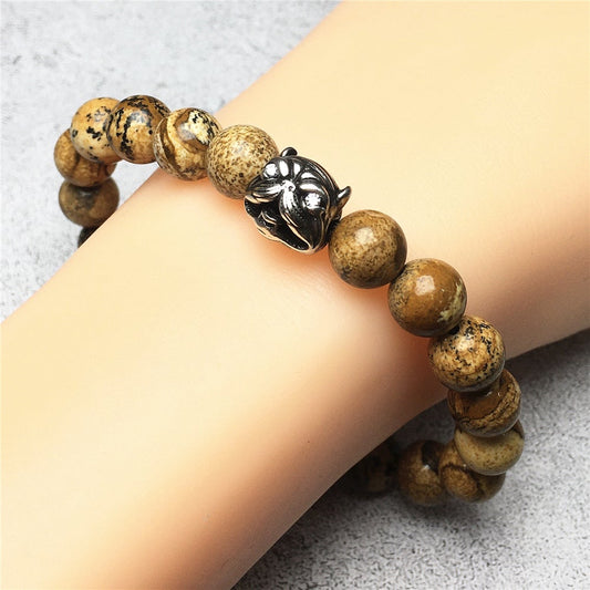 Natural Picture Jasper Stone Beaded Bracelet American Bully Pitbull Charm Jewelry