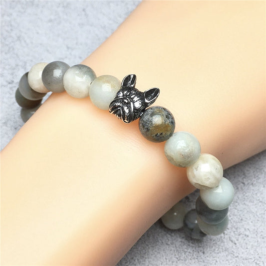 French Bulldog Bracelet For Men Women Natural Amazonite Gemstone Beaded Jewelry