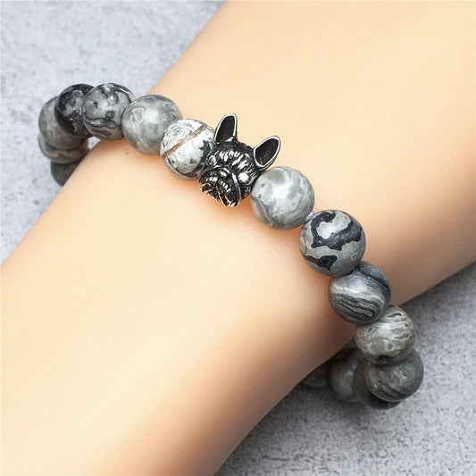 Cute French Bulldog Bracelet For Men Women Natural Map Stone Beaded Jewelry
