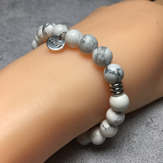 Gemstone Howlite Gemstone Custom Beads Bracelet Love Heart Charm Stretch Bracelets