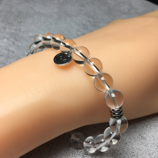 Gemstone Clear Quartz Gemstone Custom Beads Bracelet Love Heart Charm Stretch Bracelets