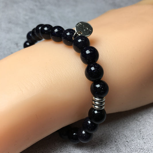 Gemstone Blue Sandstone Custom Beads Bracelet Love Heart Charm Stretch Bracelets