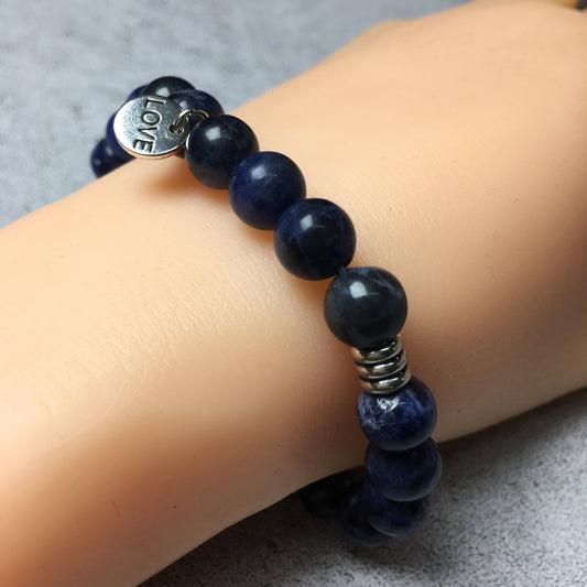 Gemstone Sodalite Custom Beads Bracelet Love Heart Charm Stretch Bracelets