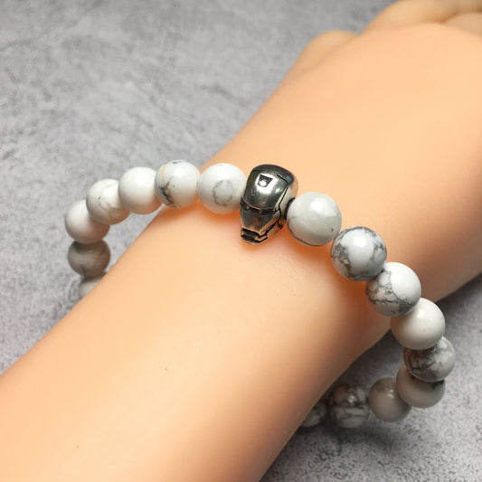 Howlite Beads with Super Hero Iron Man Bracelet Elastic Handmade Jewelry Accessories