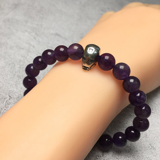 Super Hero Iron Man Bracelet Purple Amethyst Beads Elastic Handmade Jewelry Accessories