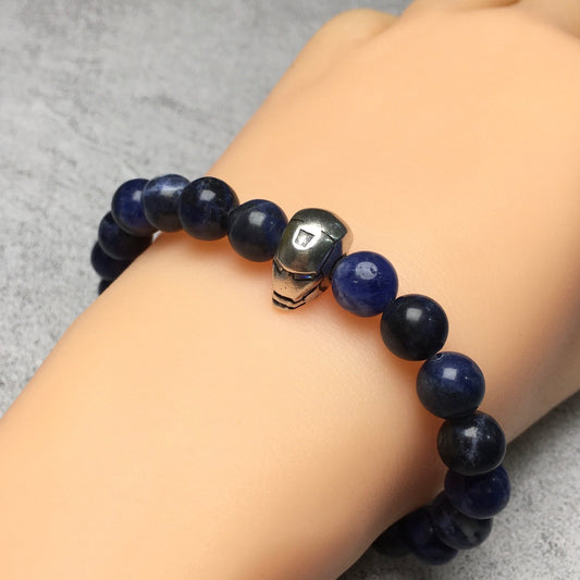 Super Hero Iron Man Bracelet Sodalite Beads Elastic Handmade Jewelry Accessories