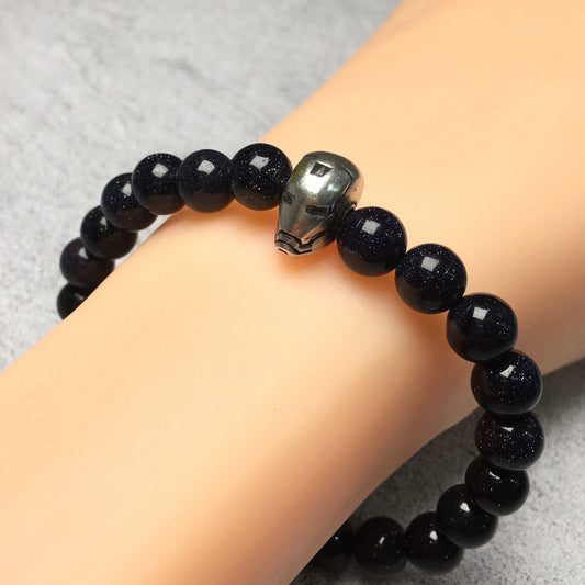 Blue Sandstone Beads with Super Hero Iron Man Bracelet Elastic Handmade Jewelry Accessories