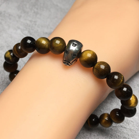 Super Hero Iron Man Bracelet Tiger Eye Beads Elastic Handmade Jewelry Accessories