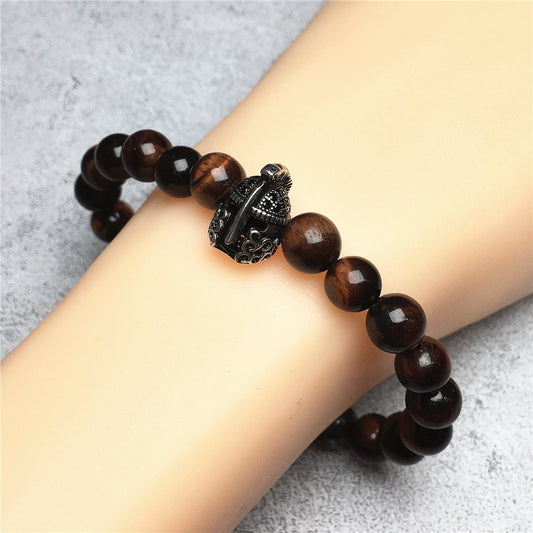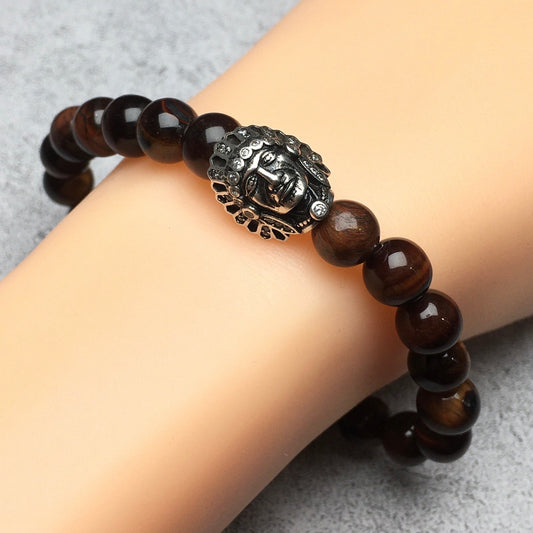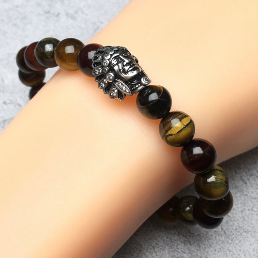 Natural Stone Bracelets Indian Head Bracelet Multi Tigereye Beads Elastic Women Men Jewelry