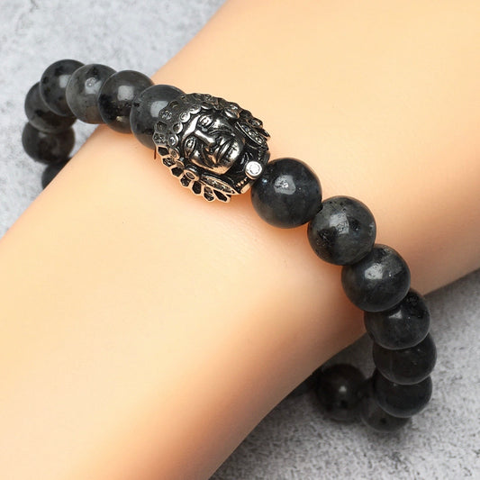 Natural Stone Bracelets Indian Head Bracelet Labradorite Beads Elastic Women Men Jewelry