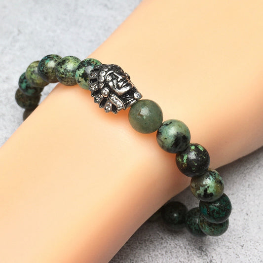 Natural Stone Bracelets Indian Head Bracelet African Turqoiuse Beads Elastic Women Men Jewelry