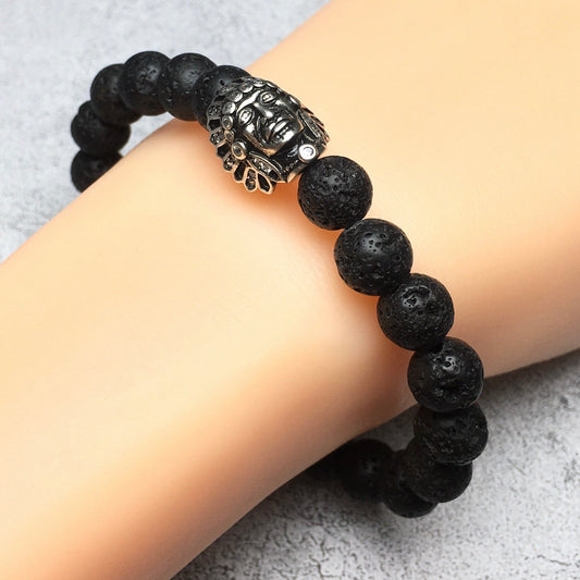 Natural Stone Bracelets Indian Head Bracelet Lava Beads Elastic Women Men Jewelry