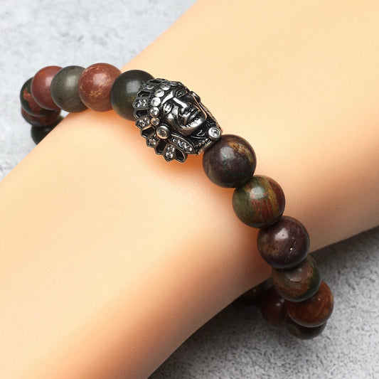Natural Stone Bracelets Indian Head Bracelet Picasso Beads Elastic Women Men Jewelry
