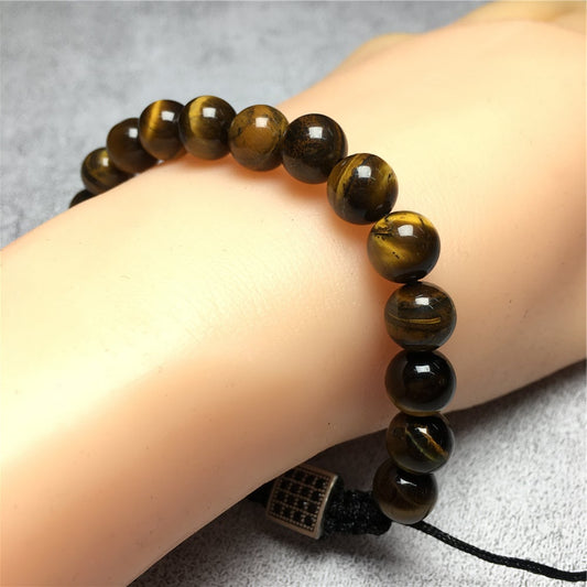 Natural Tigereye Gemstone Adjustable Braid Rope Bracelet Handmade Design