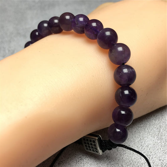 Natural Purple Amethyst Gemstone Adjustable Braid Rope Bracelet Handmade Design