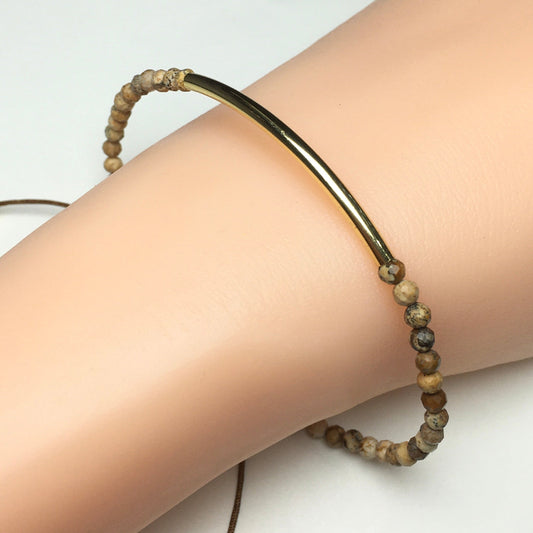 Faceted Picture Jasper Beads Bracelet Adjustable Handmade Braid Rope Designer Bracelet