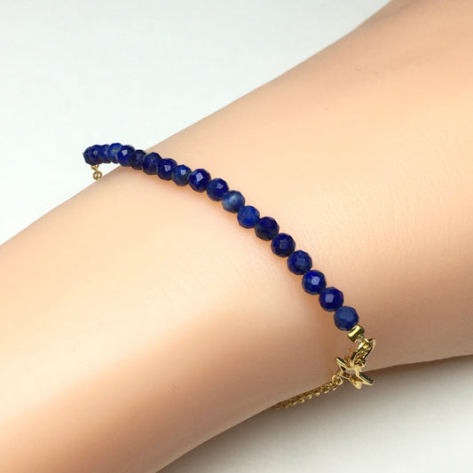 Lapis Lazuli Gemstone Linked Bracelet Custom Beads Adjustable Beads Stone Bracelet