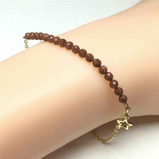 Gold Sandstone Goldstone Linked Bracelet Custom Beads Adjustable Beads Stone Bracelet