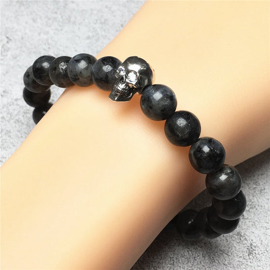 Labradorite Stretch Bracelet with Crystal Skull Semi Precious Gemstone Elastic Beaded Bracelet