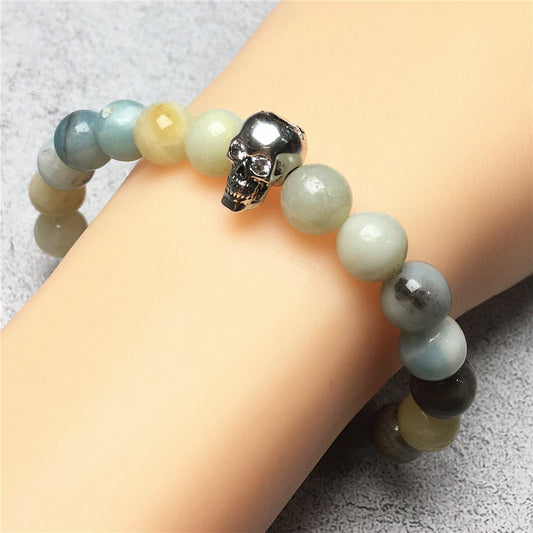 Amazonite Stretch Bracelet with Crystal Skull Semi Precious Gemstone Elastic Beaded Bracelet